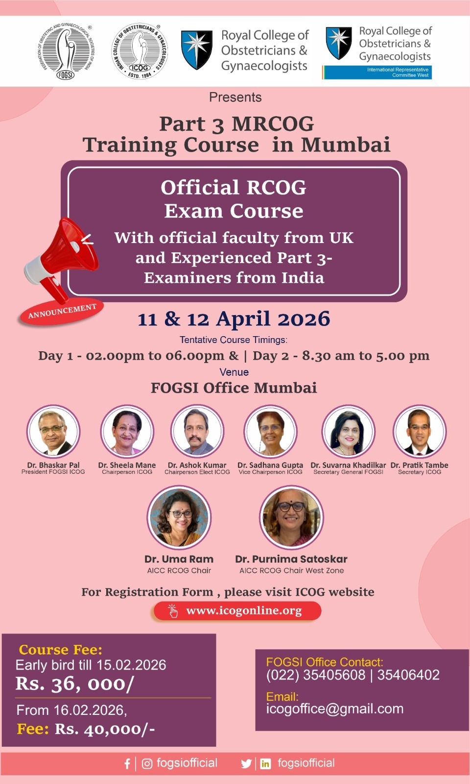Application form to attend ICOG Online Centralized Lecture Series in Reproductive Medicine, Endoscopy, Fetal Medicine for (March to June) only to attend for outside Candidates who are Post Graduate Ob-Gyn by paying only Rs 10,000/- Click here for Application Form