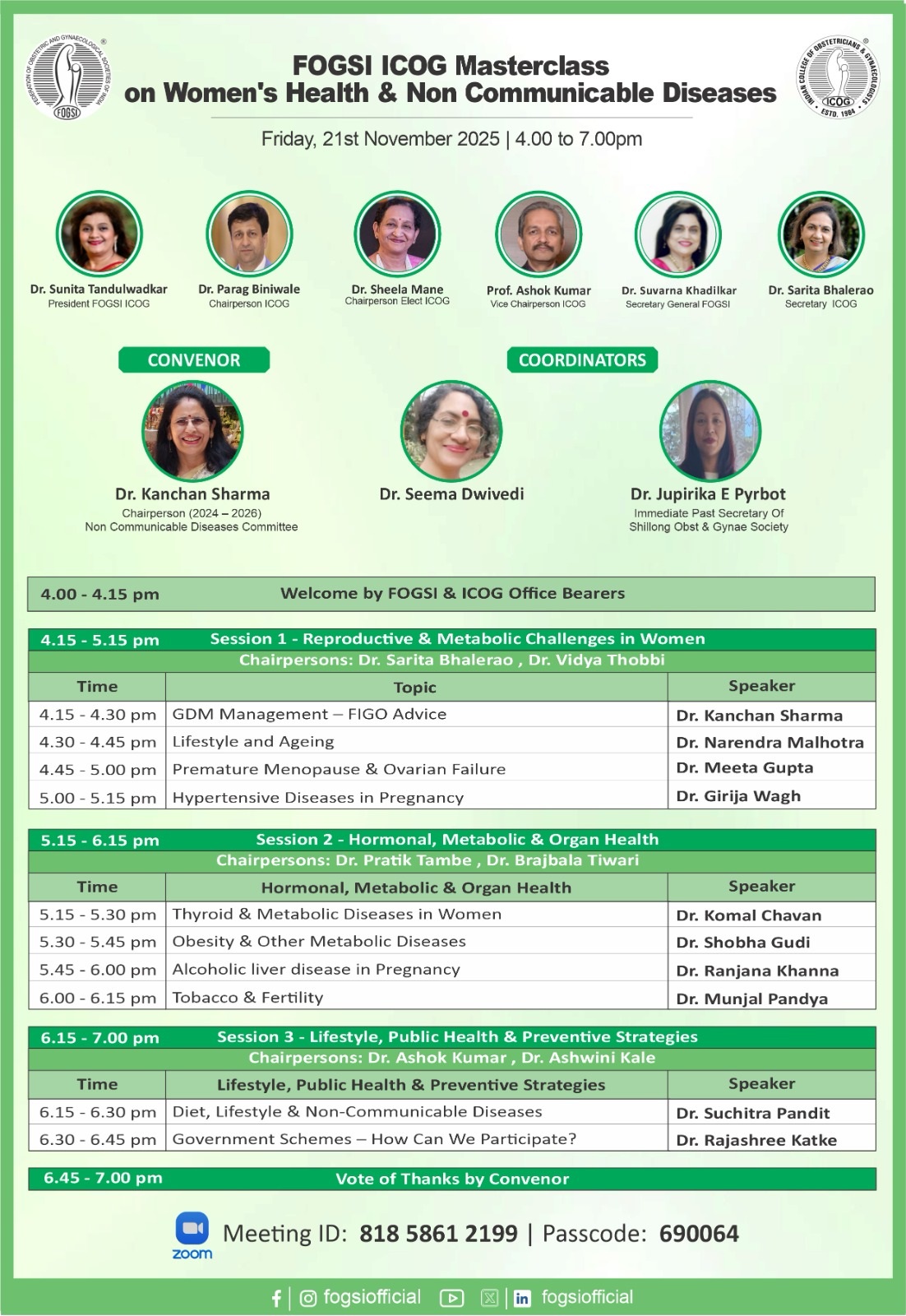 | 6 | FOGSI ICOG Masterclass on WH & NCD - 21.11.2025 | https://youtu.be/fe0NPAZj1fY |