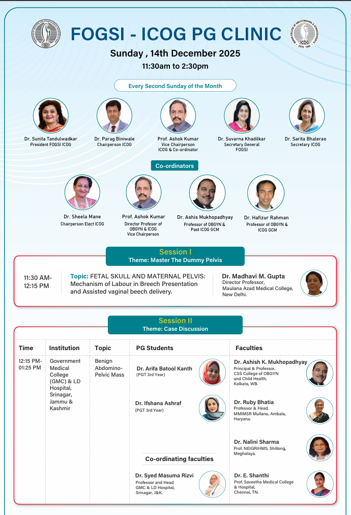 | 2 | FOGSI - ICOG PG CLINIC - 09.11.2025 | https://youtu.be/x4ioIj2jeWQ |